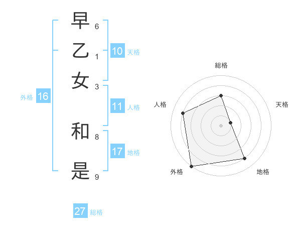 早乙女 和是さんを姓名の画数から五運を鑑定