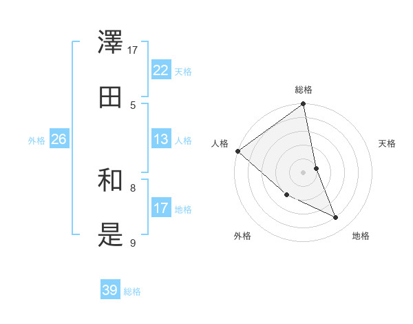 澤田 和是さんの総格は39画の5点!