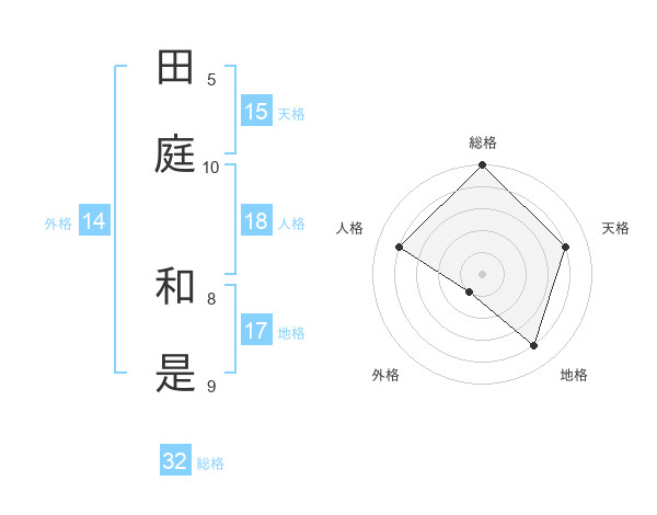 田庭 和是さんの総格は32画の5点!