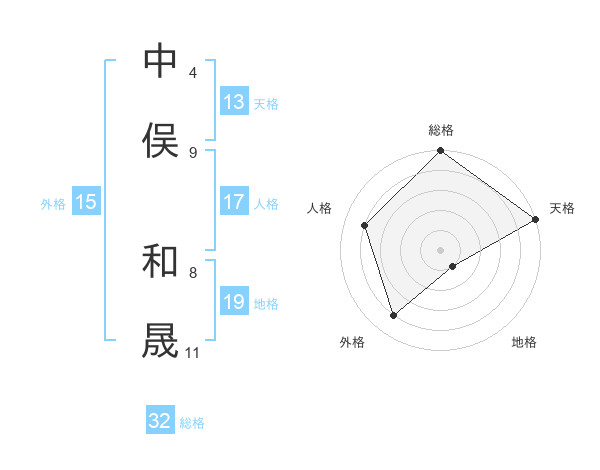 中俣 和晟さんを姓名の画数から五運を鑑定