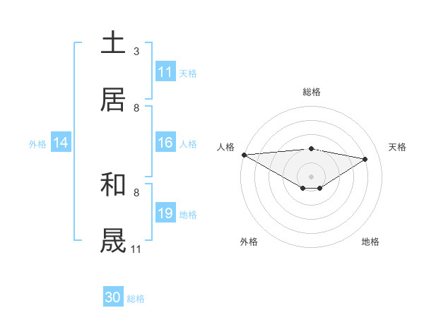 土居 和晟さんの総格は30画の2点!
