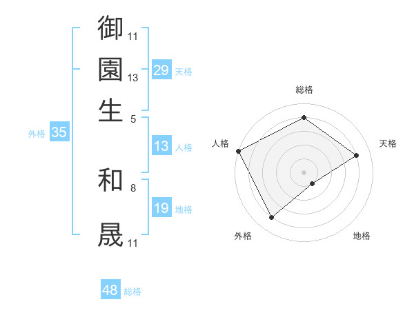 御園生 和晟さんを姓名の画数から五運を鑑定