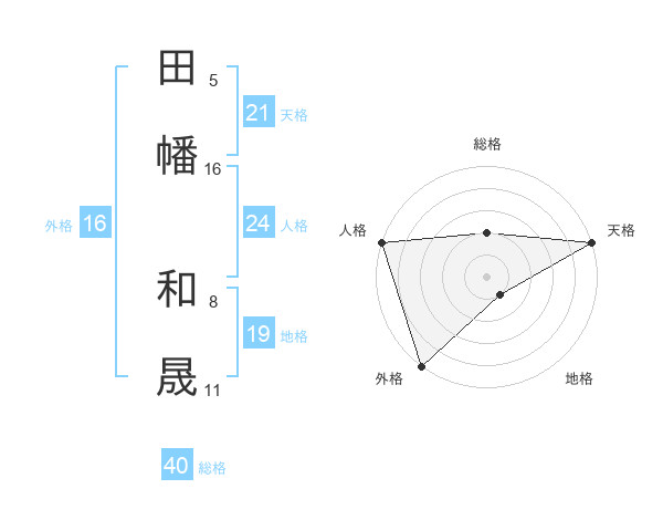 田幡 和晟さんを姓名の画数から五運を鑑定