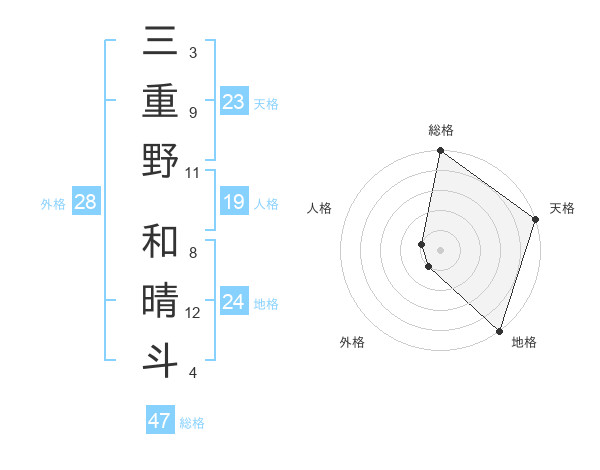 三重野 和晴斗さんを姓名の画数から五運を鑑定