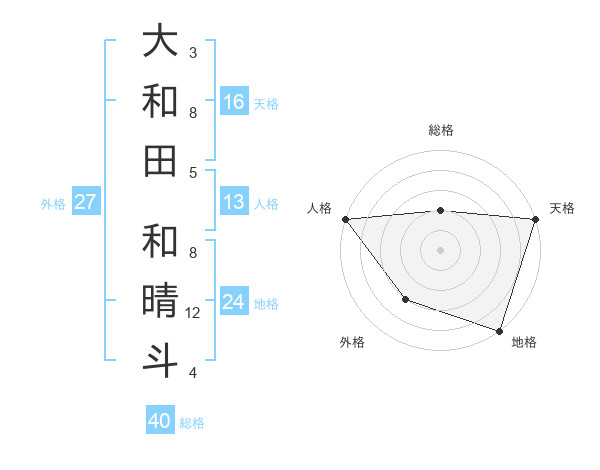 大和田 和晴斗さんの天格は16画の5点!