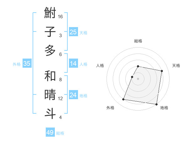鮒子多 和晴斗さんを姓名の画数から五運を鑑定