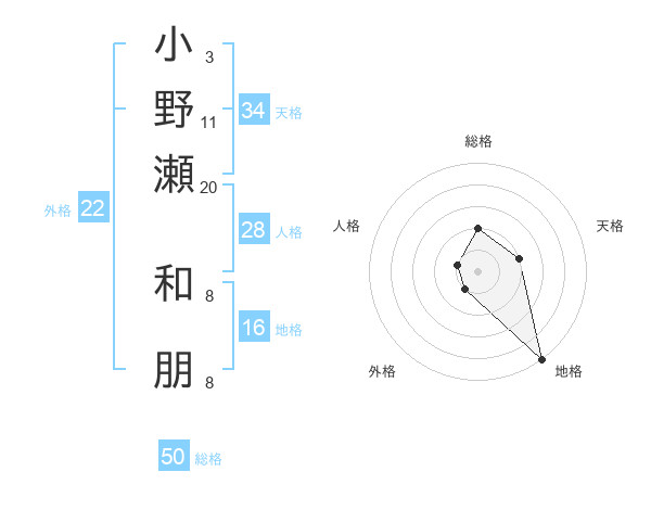 小野瀬 和朋さんを姓名の画数から五運を鑑定