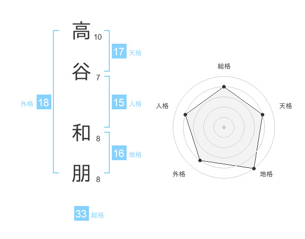 高谷 和朋さんを姓名の画数から五運を鑑定