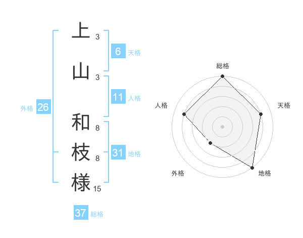 上山 和枝様さんを姓名の画数から五運を鑑定