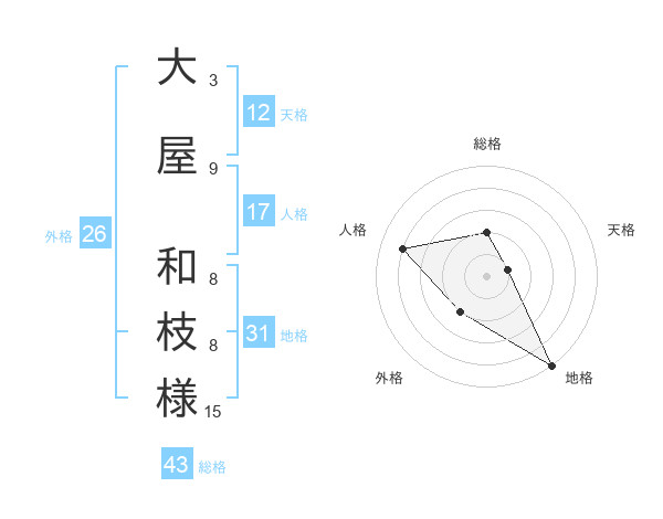 大屋 和枝様さんを姓名の画数から五運を鑑定
