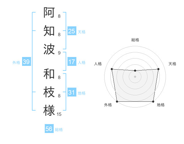 阿知波 和枝様さんを姓名の画数から五運を鑑定