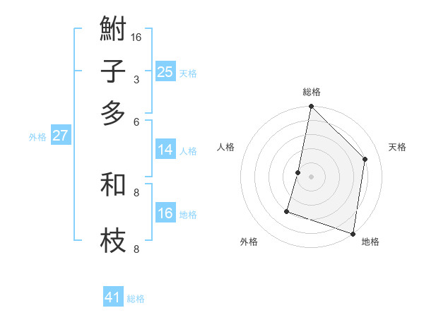 鮒子多 和枝さんを姓名の画数から五運を鑑定