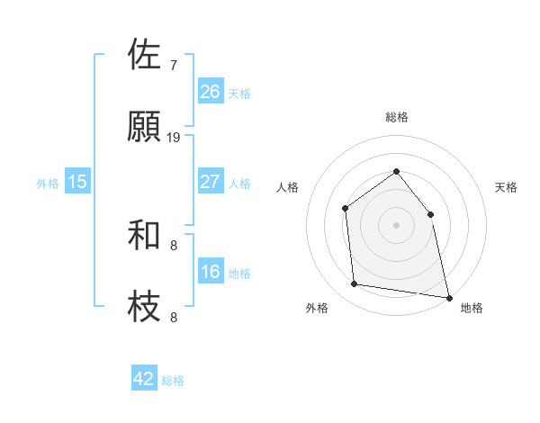 佐願 和枝さんを姓名の画数から五運を鑑定