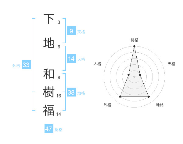 下地 和樹福さんを姓名の画数から五運を鑑定