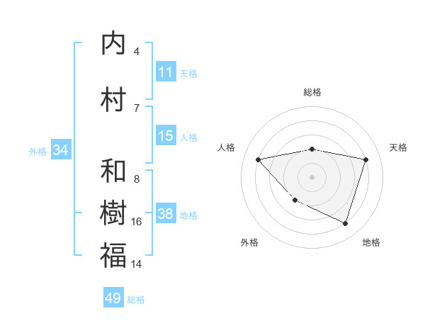 内村 和樹福さんを姓名の画数から五運を鑑定
