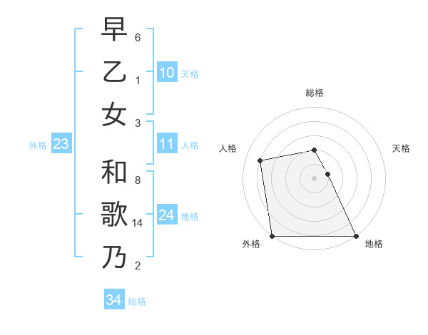 早乙女 和歌乃さんを姓名の画数から五運を鑑定