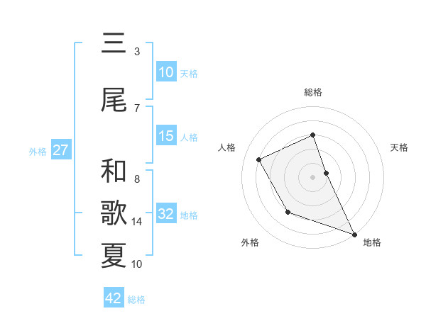 三尾 和歌夏さんを姓名の画数から五運を鑑定