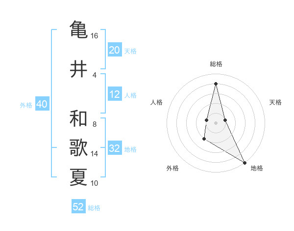 亀井 和歌夏さんを姓名の画数から五運を鑑定