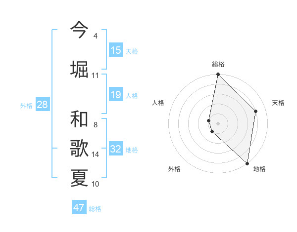 今堀 和歌夏さんを姓名の画数から五運を鑑定