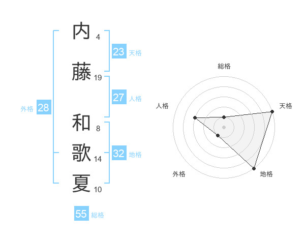 内藤 和歌夏さんを姓名の画数から五運を鑑定