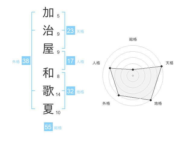 加治屋 和歌夏さんの天格は23画の5点