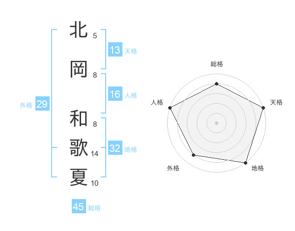 北岡 和歌夏さんを姓名の画数から五運を鑑定