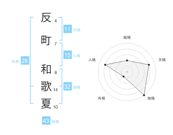 反町 和歌夏さんを姓名の画数から五運を鑑定