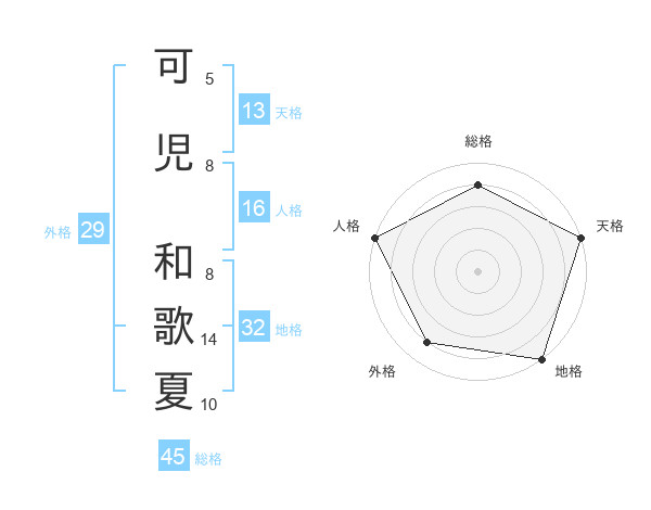 可児 和歌夏さんの総格は45画の4点!