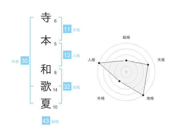 寺本 和歌夏さんを姓名の画数から五運を鑑定