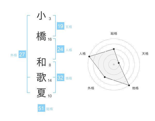 小橋 和歌夏さんの総格は51画の3点!