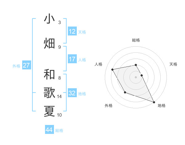 小畑 和歌夏さんを姓名の画数から五運を鑑定