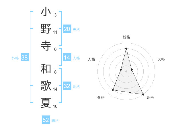 小野寺 和歌夏さんを姓名の画数から五運を鑑定