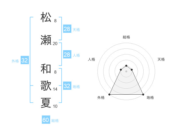 松瀬 和歌夏さんを姓名の画数から五運を鑑定