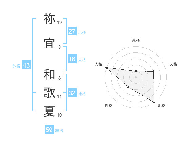 祢宜 和歌夏さんを姓名の画数から五運を鑑定