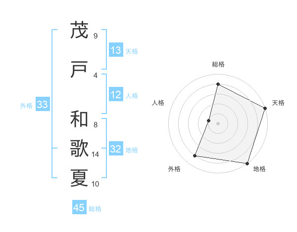 茂戸 和歌夏さんを姓名の画数から五運を鑑定
