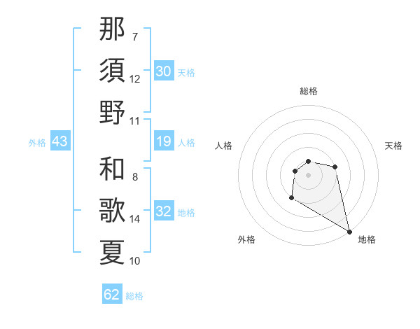 那須野 和歌夏さんを姓名の画数から五運を鑑定