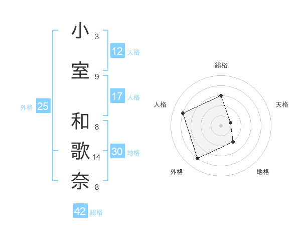 小室 和歌奈さんを姓名の画数から五運を鑑定
