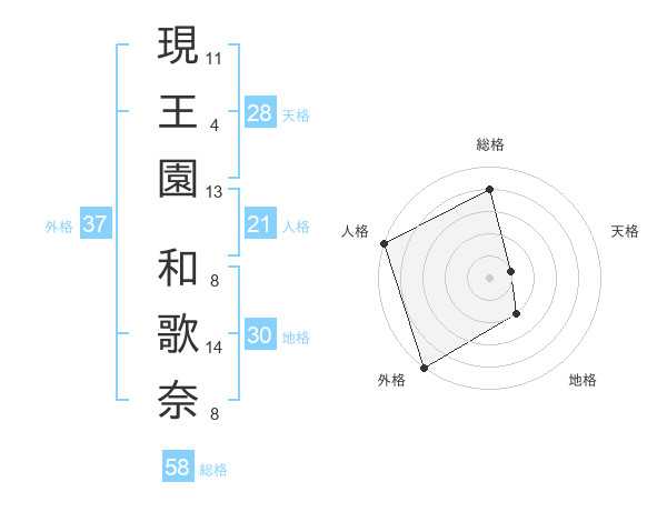 現王園 和歌奈さんを姓名の画数から五運を鑑定