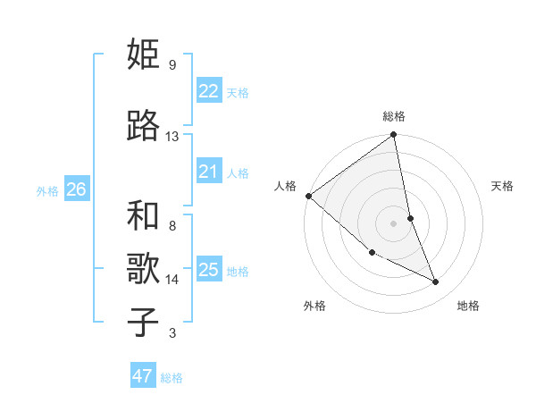 姫路 和歌子さんを姓名の画数から五運を鑑定