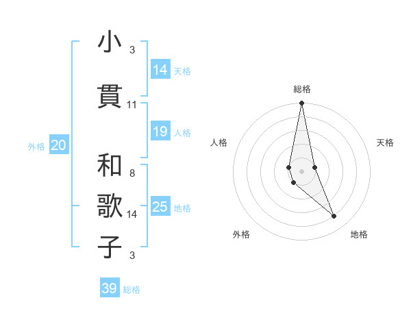 小貫 和歌子さんの天格は14画の1点!