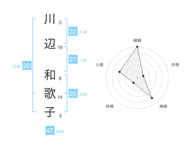 川辺 和歌子さんの総格は47画の5点!