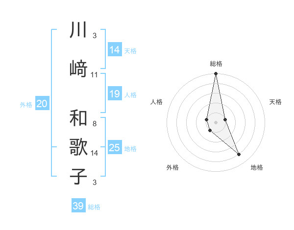 川﨑 和歌子さんの総格は39画の5点!