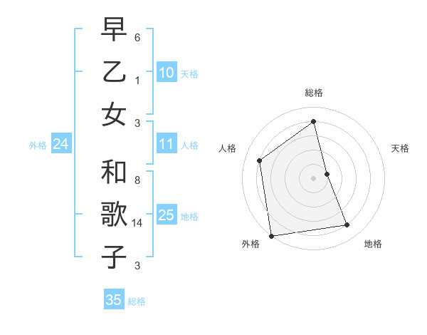 早乙女 和歌子さんを姓名の画数から五運を鑑定