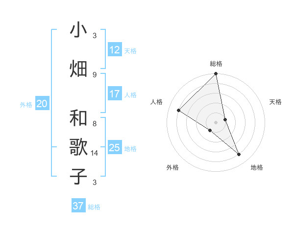 小畑 和歌子さんを姓名の画数から五運を鑑定