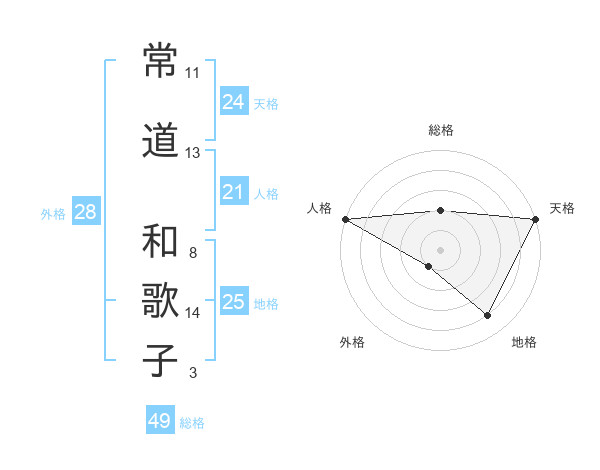 常道 和歌子さんを姓名の画数から五運を鑑定