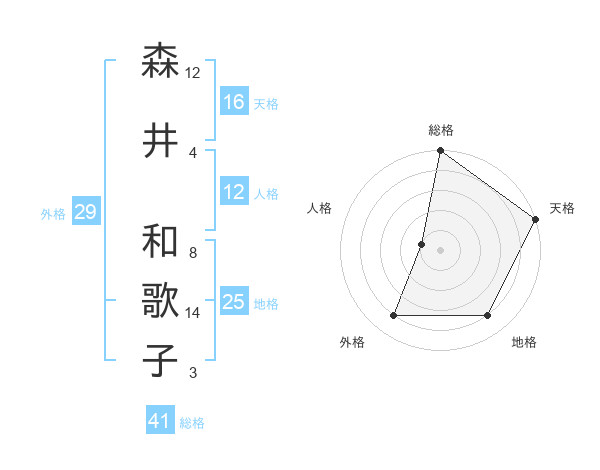 森井 和歌子さんを姓名の画数から五運を鑑定