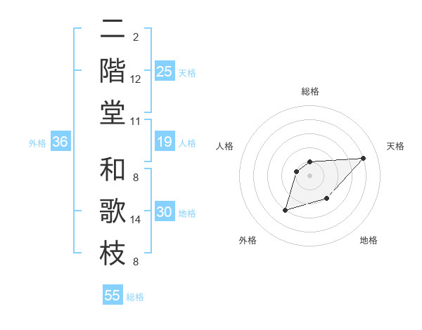 二階堂 和歌枝さんの総格は55画の1点