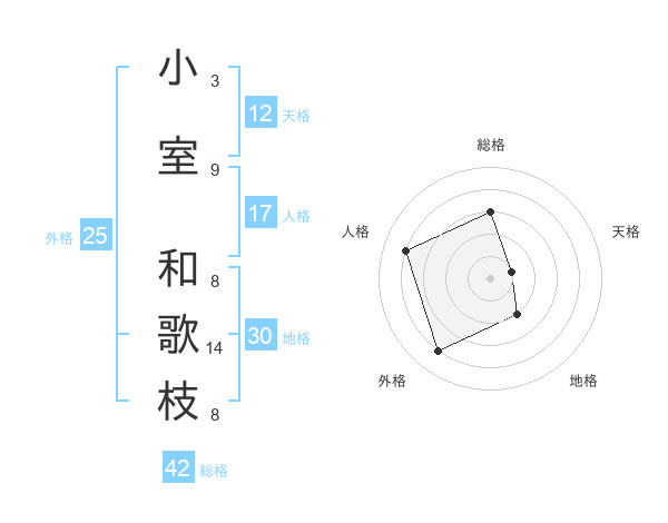 小室 和歌枝さんの総格は42画の3点!