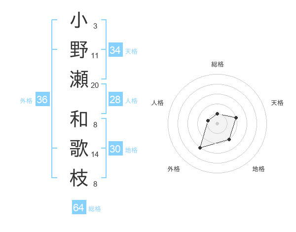 小野瀬 和歌枝さんを姓名の画数から五運を鑑定