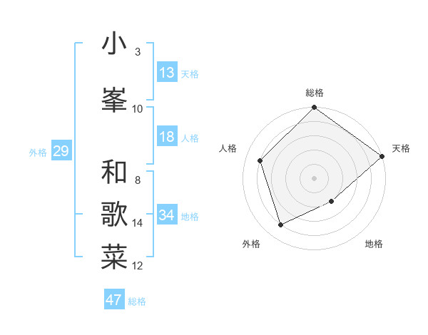 小峯 和歌菜さんの天格は13画の5点!